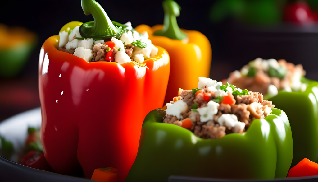 Low-carb Stuffed Bell Peppers with Ground Turkey and Feta is a delectable and nutritious dish that combines Mediterranean flavors with a healthy twist.